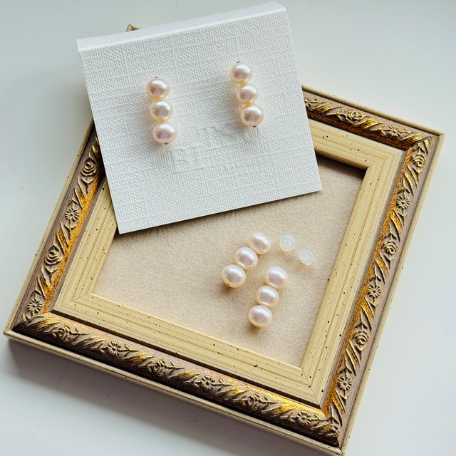 【3連淡水パール】ピアス/イヤリング (耳たぶピアス)ランダム発送