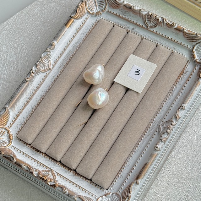 とにかく大きくて、凛とした美しさのあるバロックパールです! 表面はほかのバロックパールに比べるとゴツゴツしたイメージ。 この大きさにごつっとしたイビツさが加わると、上品な中にも カッコよさを感じます♪ バロックパールって、本当に一つ一つが違っていて、 それぞれが美しいんです♪ 他では見ない、大きくてかっこいいバロックパールをお探しの方にお勧めです♪ 24.5×19.7 厚みは11.3mm 24.3×19.3 厚みは9.6mm オイスターバロックパールじゃないのにこの大きさはなかなかありませんね♪ そしてさらに!!このバロックパールは美しいオーロラ持ちです!! 色々な角度から、強いオーロラが見て取れます♪ テリにも色々ありますが、こちらのオーロラは本当に美しいです♡ かなり大きさもテリも形も、かなり存在感のあるバロックパールピアス/イヤリング! ピアスにした時の全長は約4㎝です♪ バロックパールは身に着けるだけで、ファッションを格上げしてくれると同時に フォーマルでもカジュアルでもサマになるのがいいところ♪ いろいろなシーンでお使いいただけると思います。 完全一点物ですので、気になる方はお早めにどうぞ♪ バロックパールについてや、使用しております金具の説明は ショッピングガイドをご覧ください。