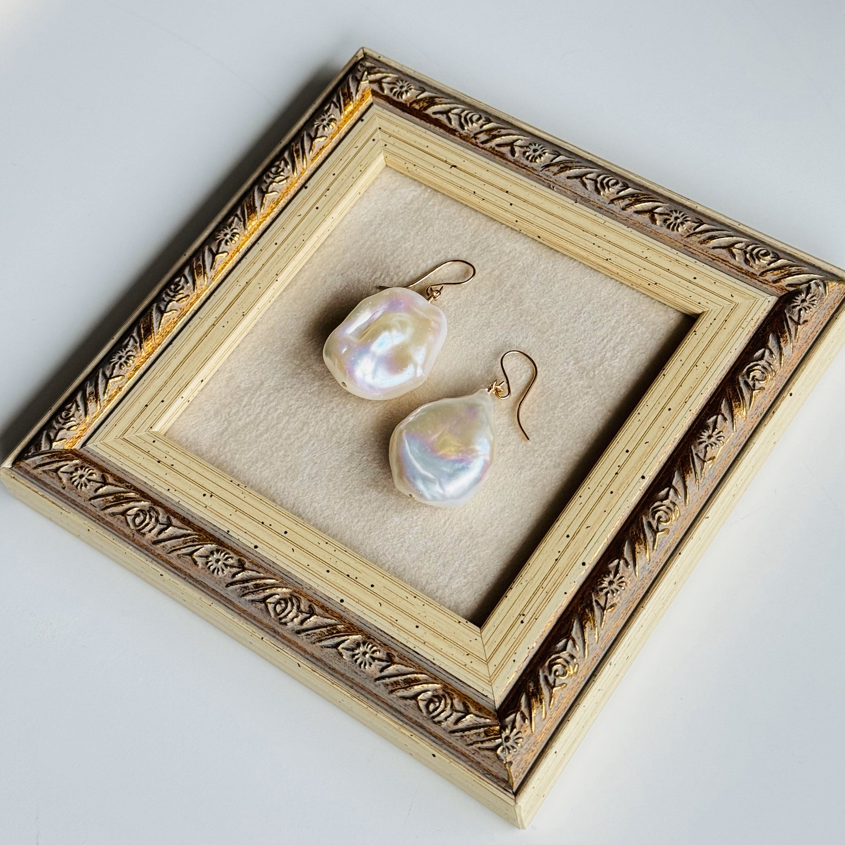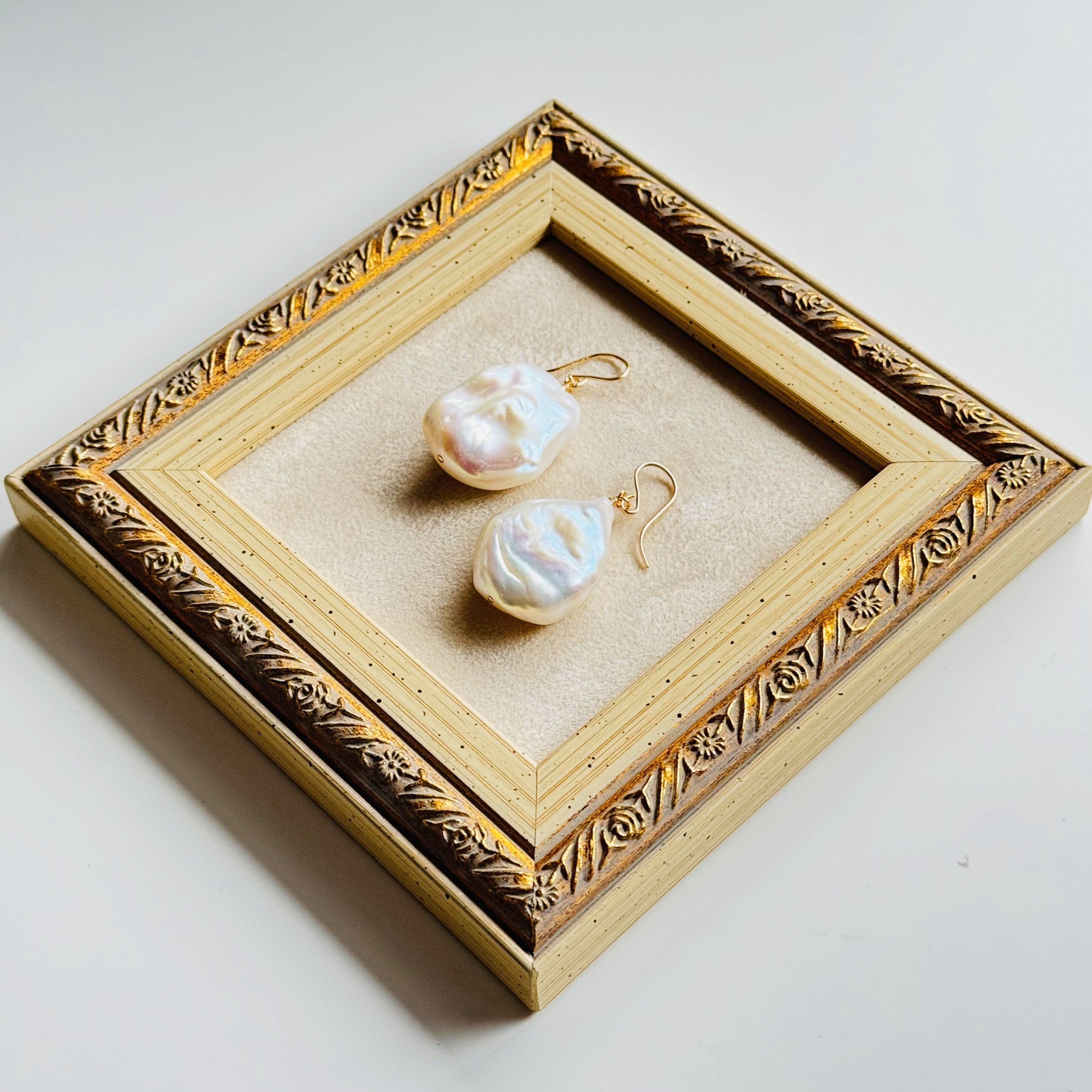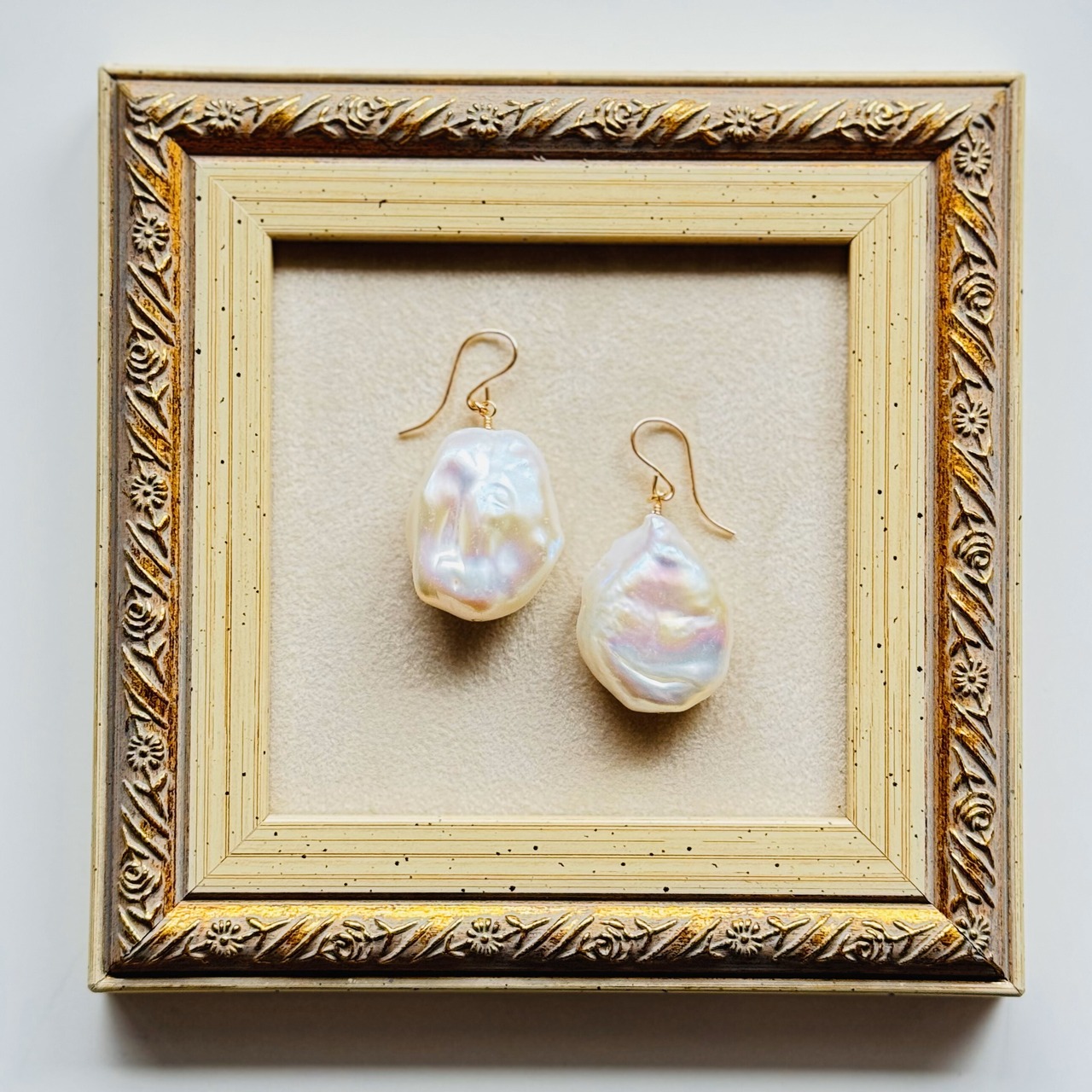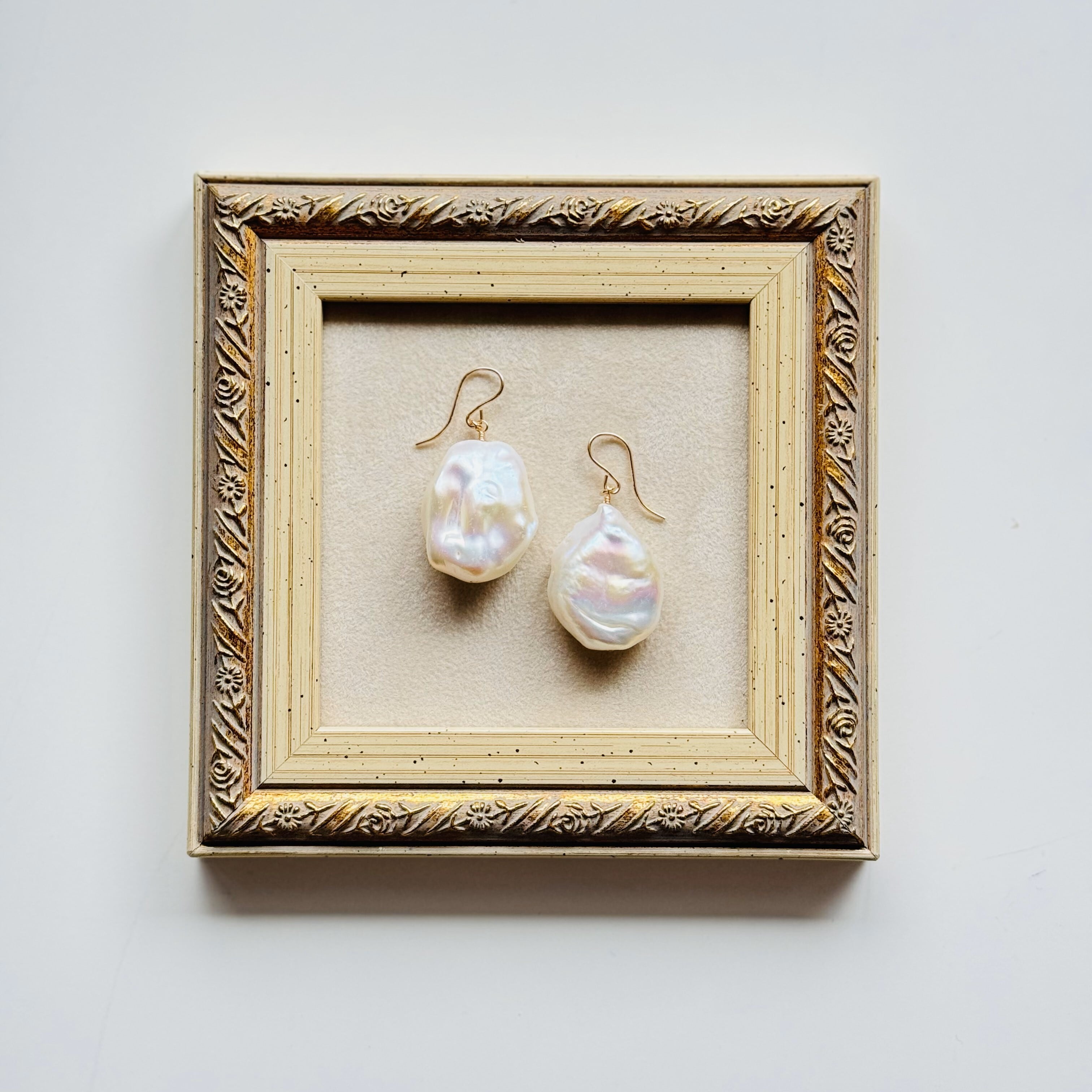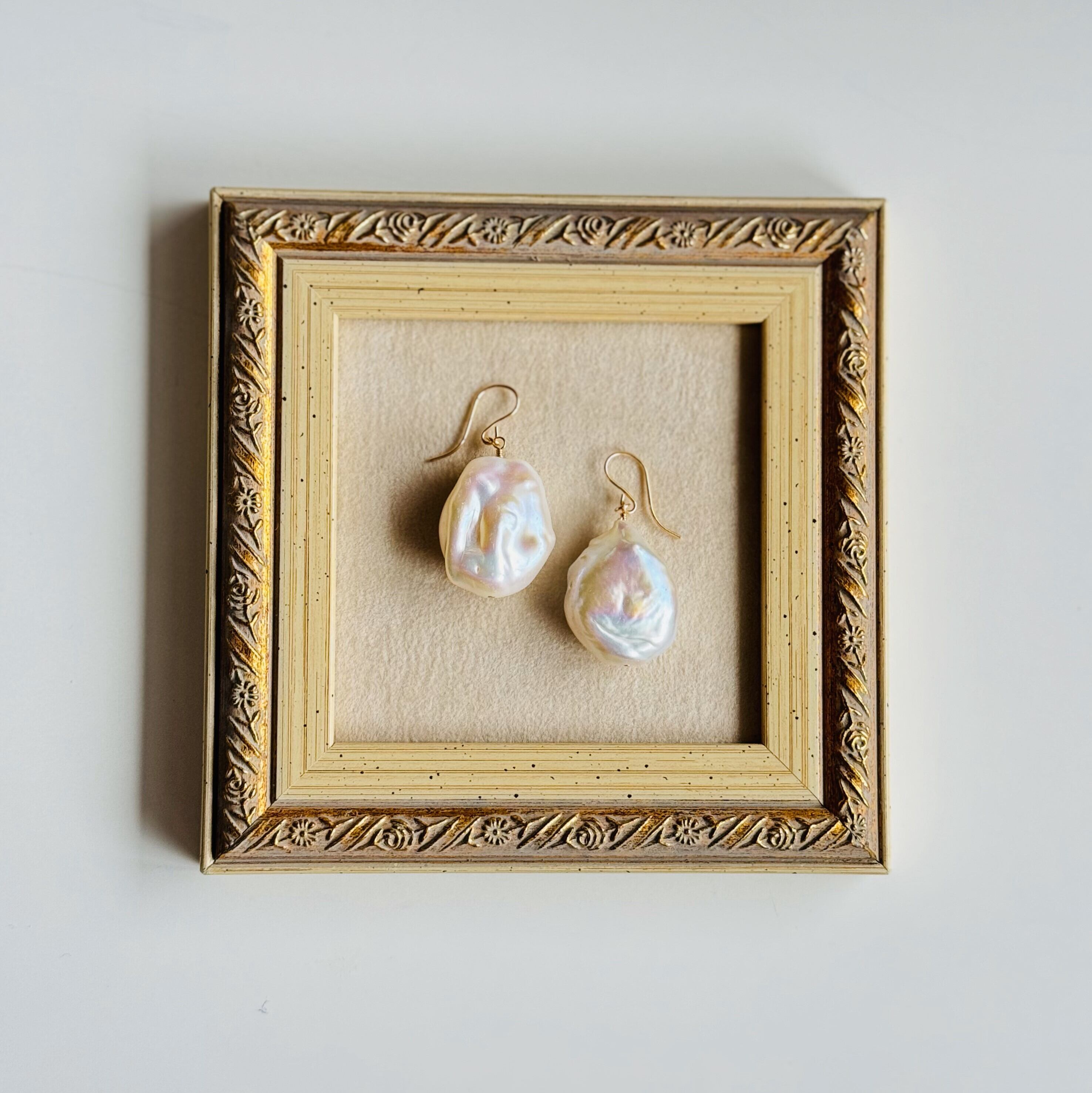 かなり大きさもテリも形も、かなり存在感のあるバロックパールピアス/イヤリング!