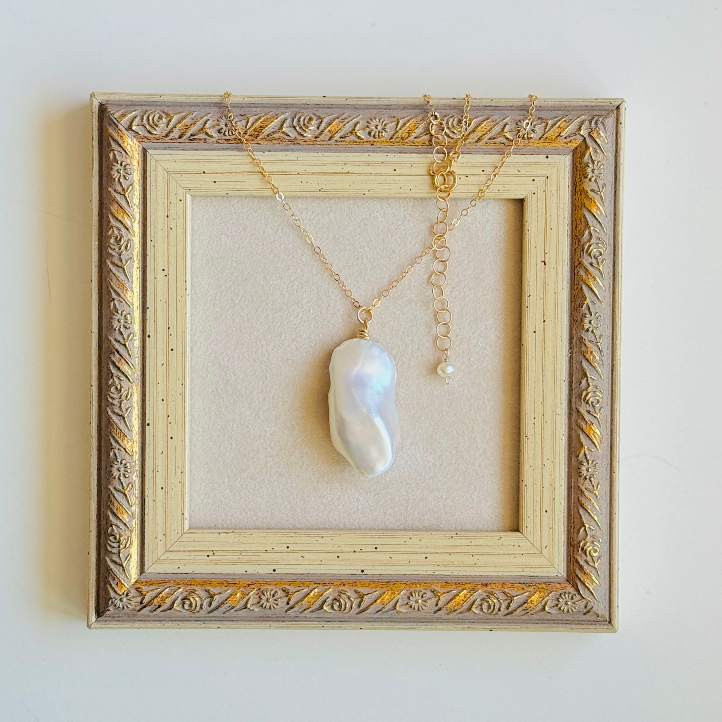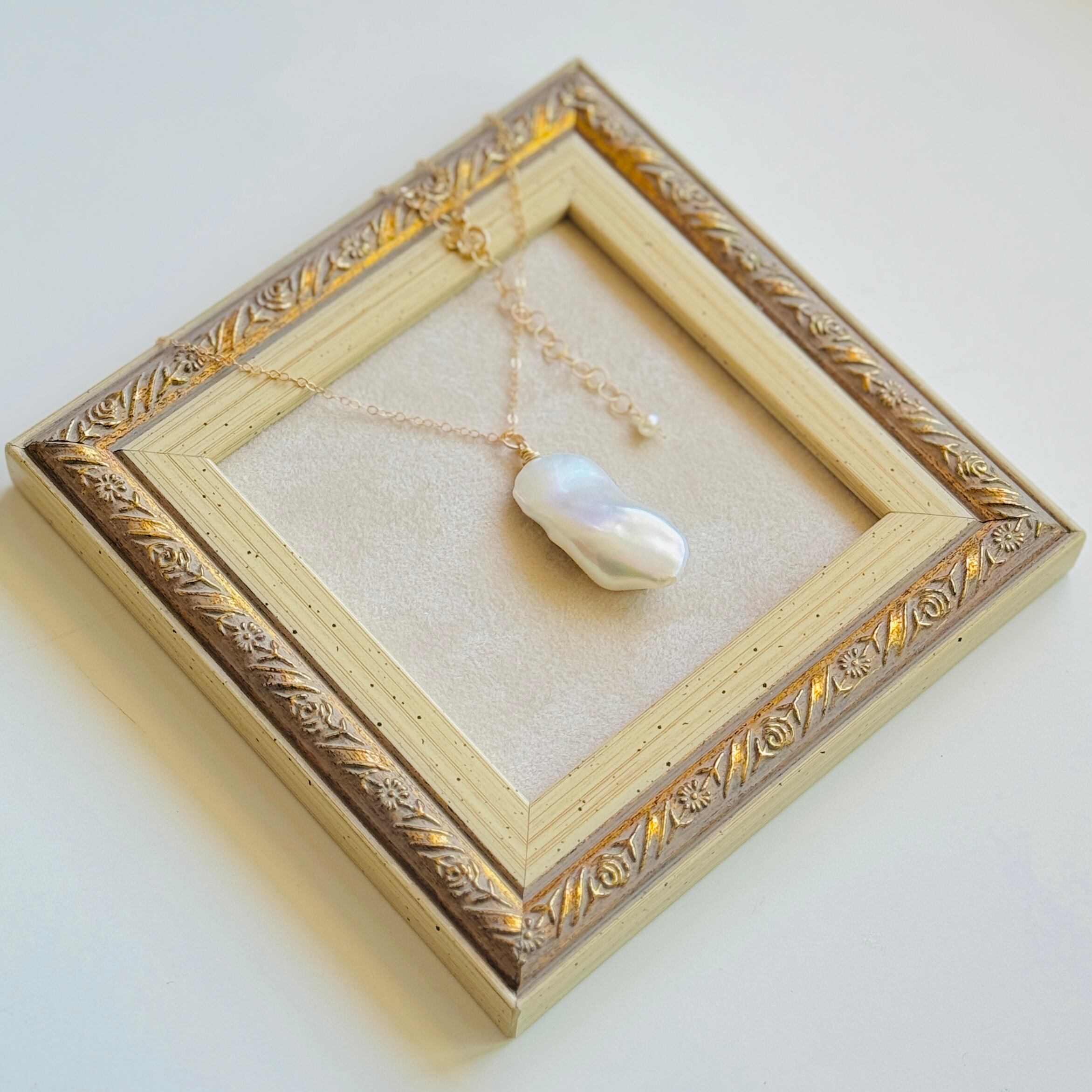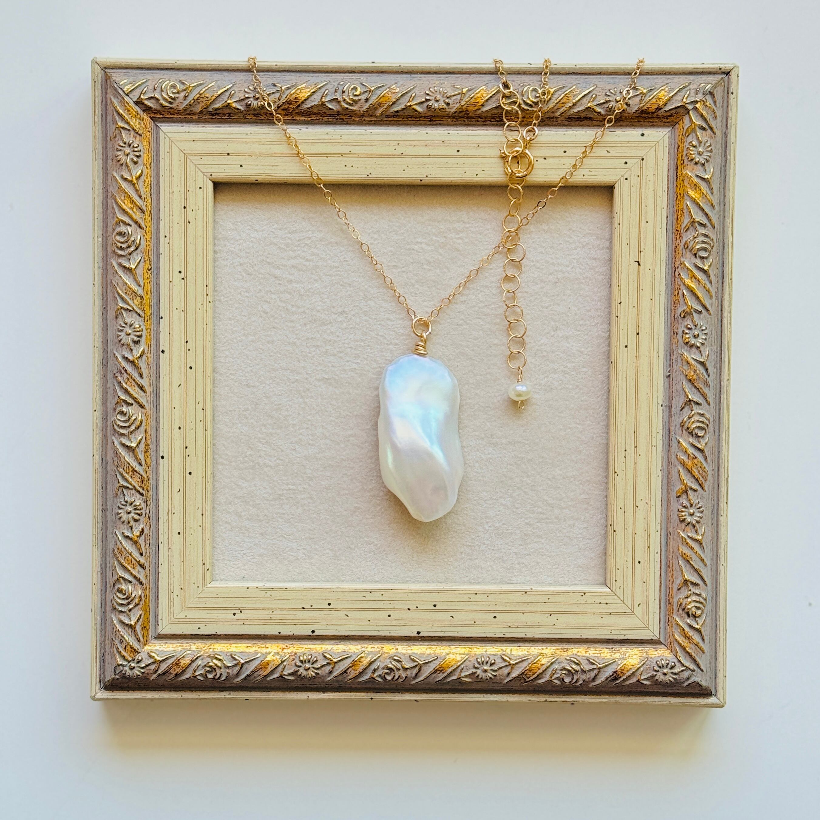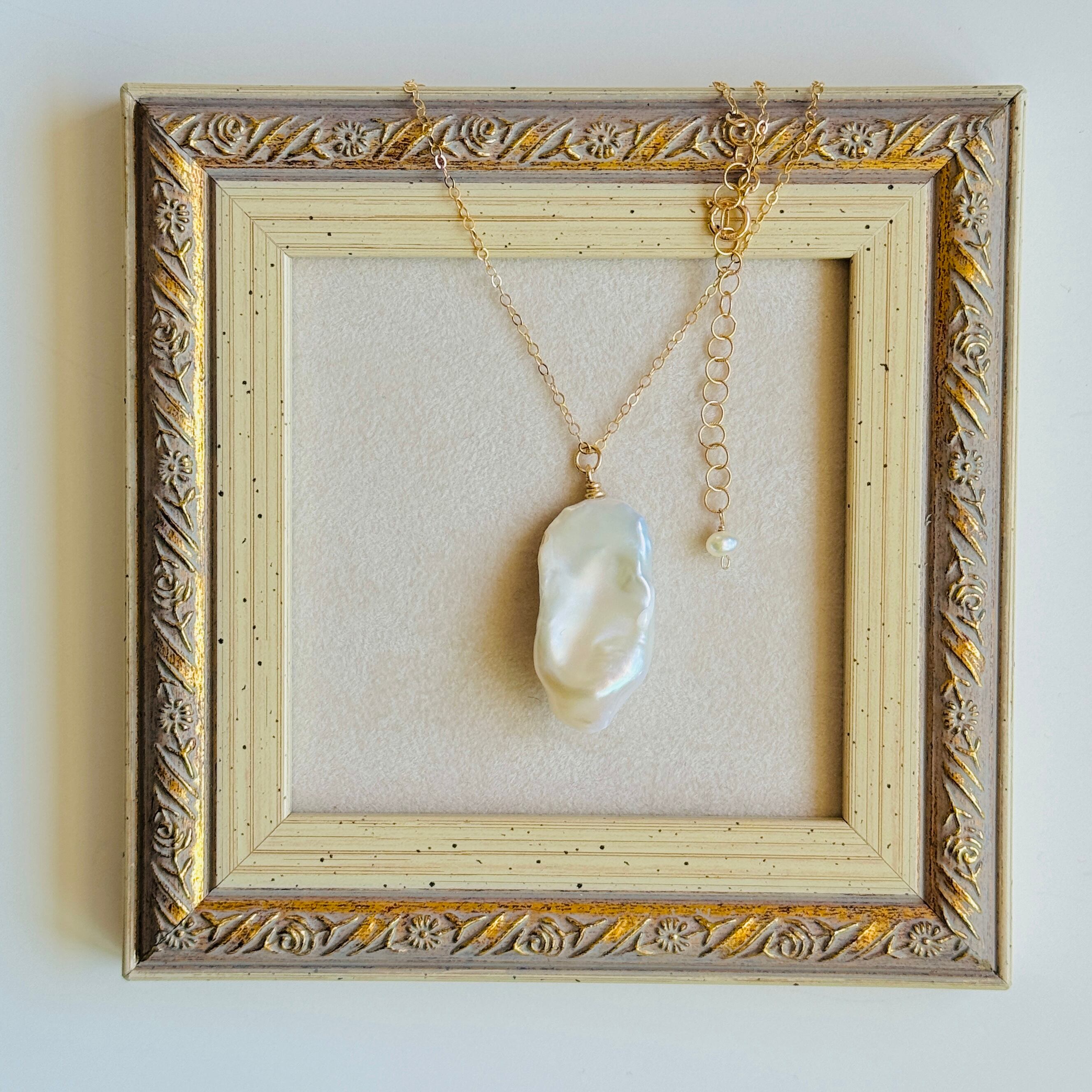 ネックレスというより、ペンダント言うほうがふさわしいくらいの大きなバロックパールでございます♪