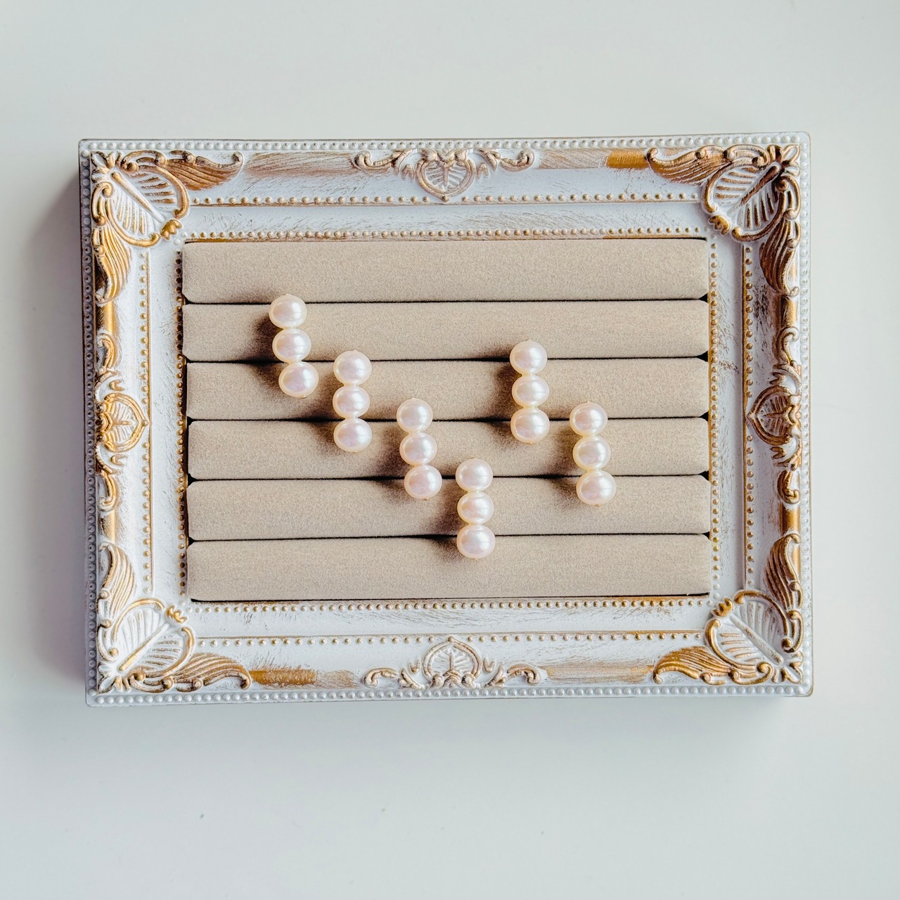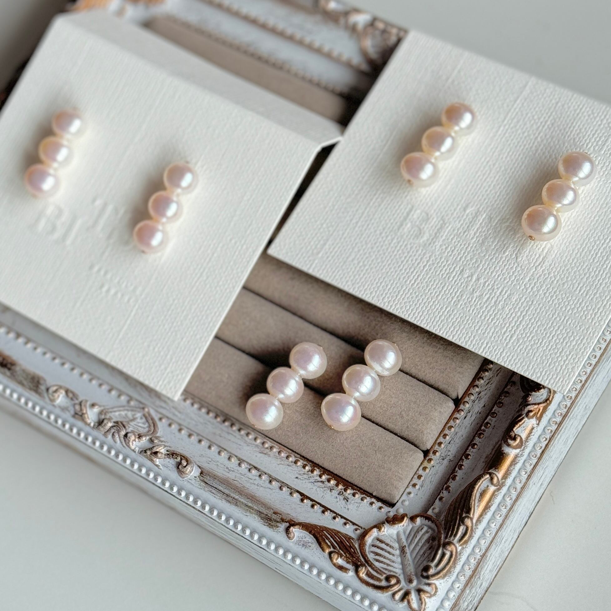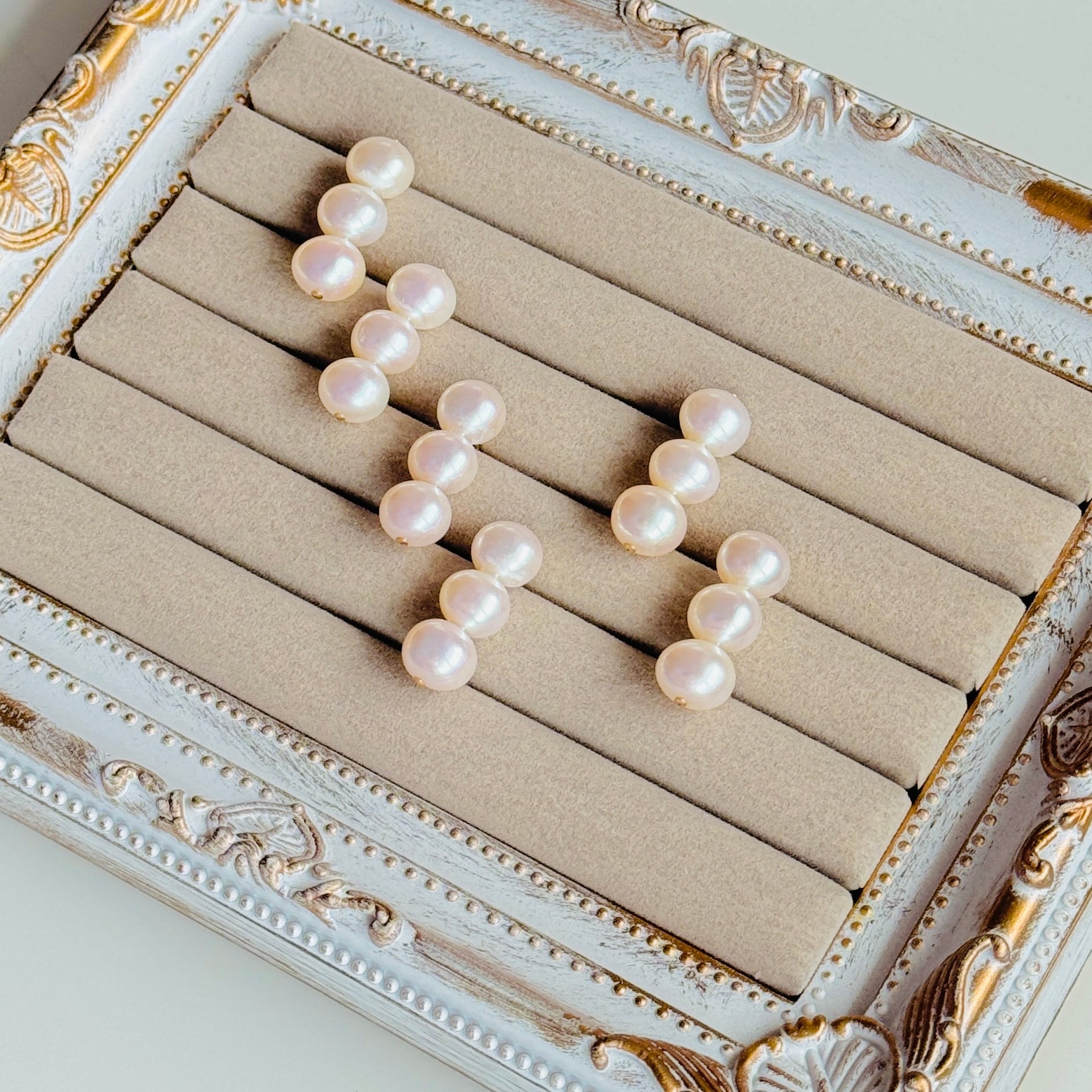 そんな3つの淡水パールが繊細に連なった上品なデザインが特徴です。