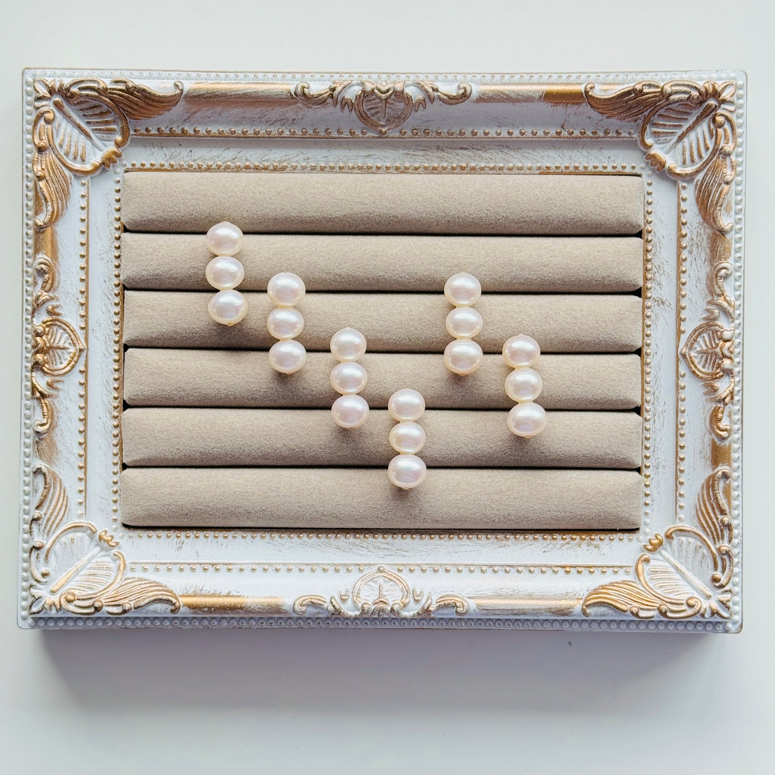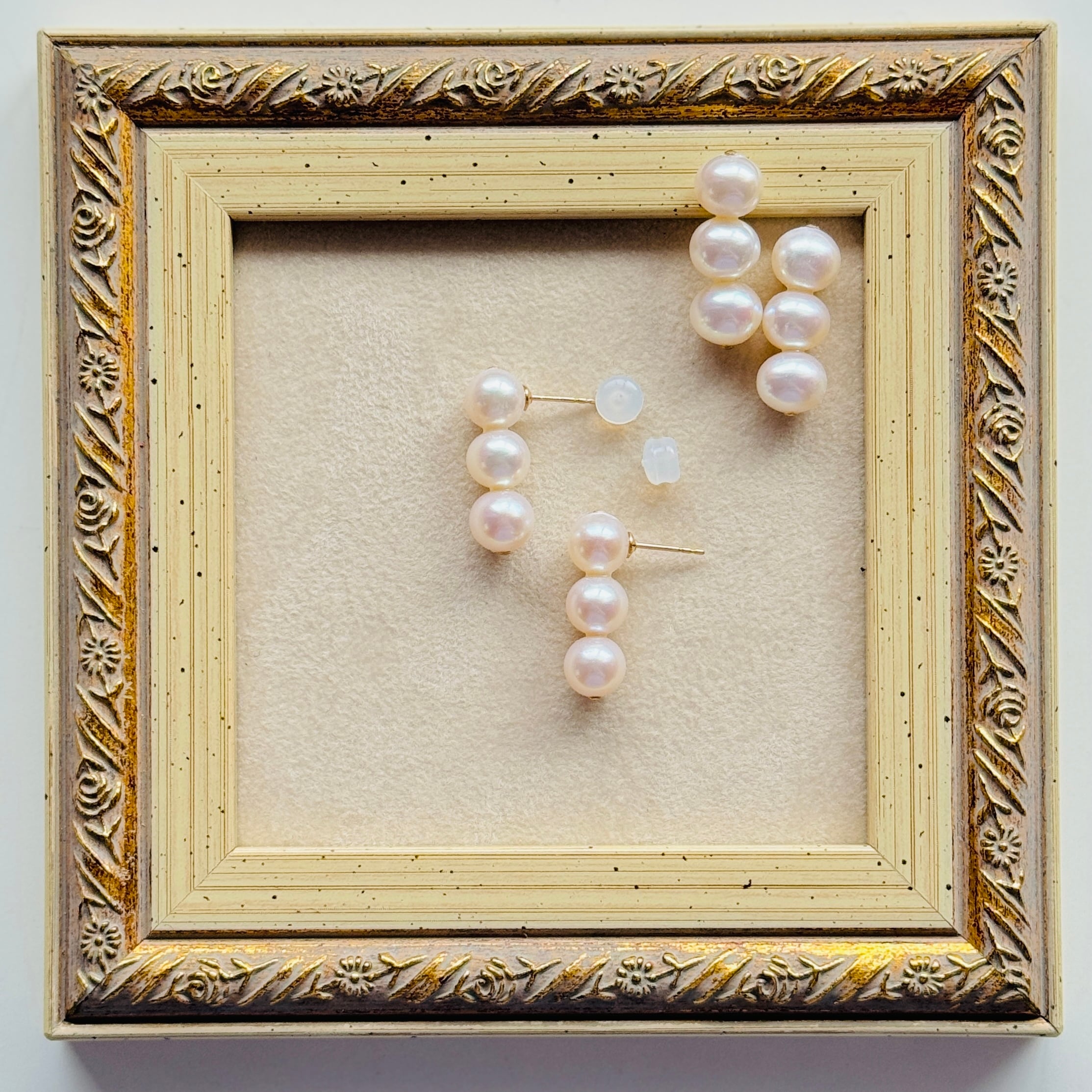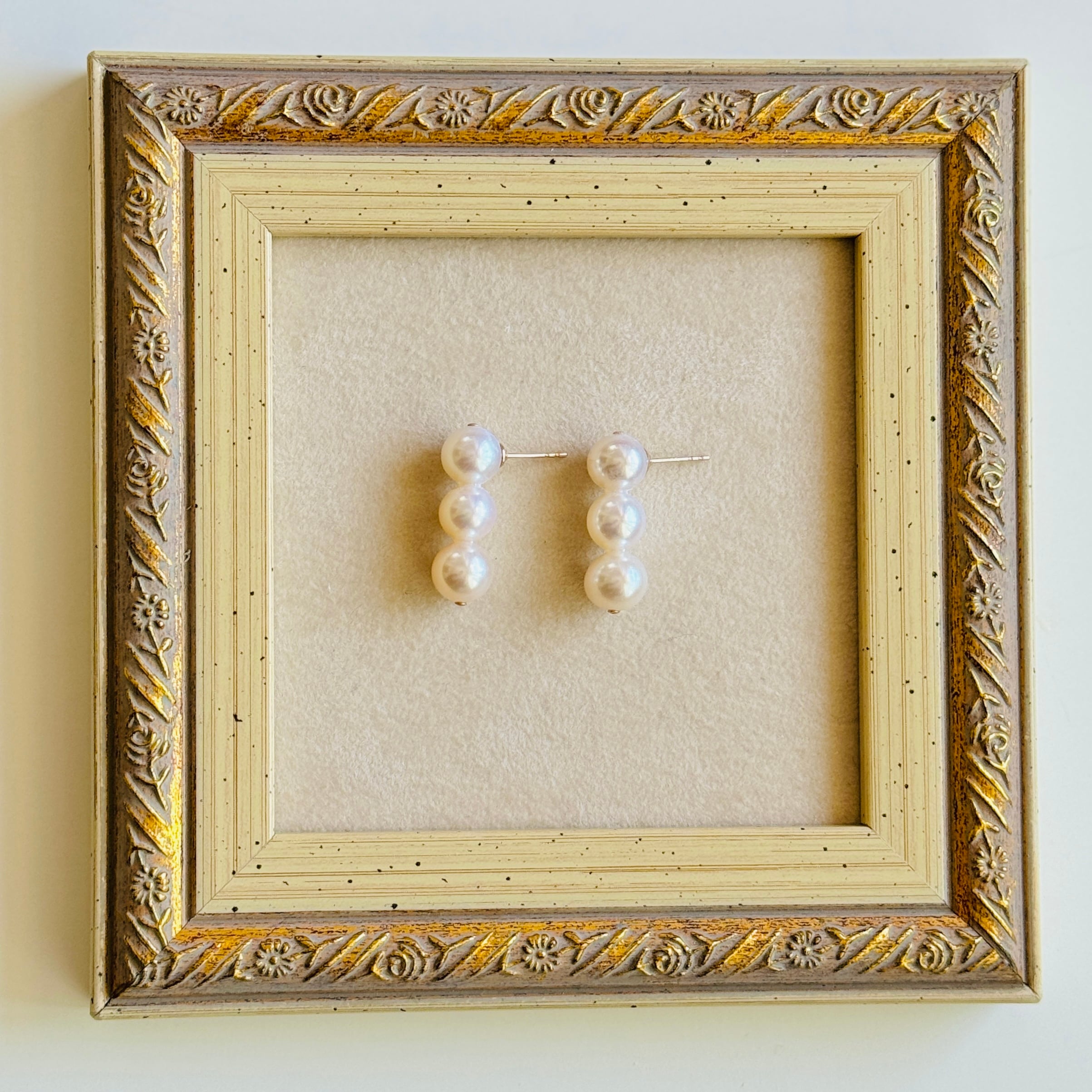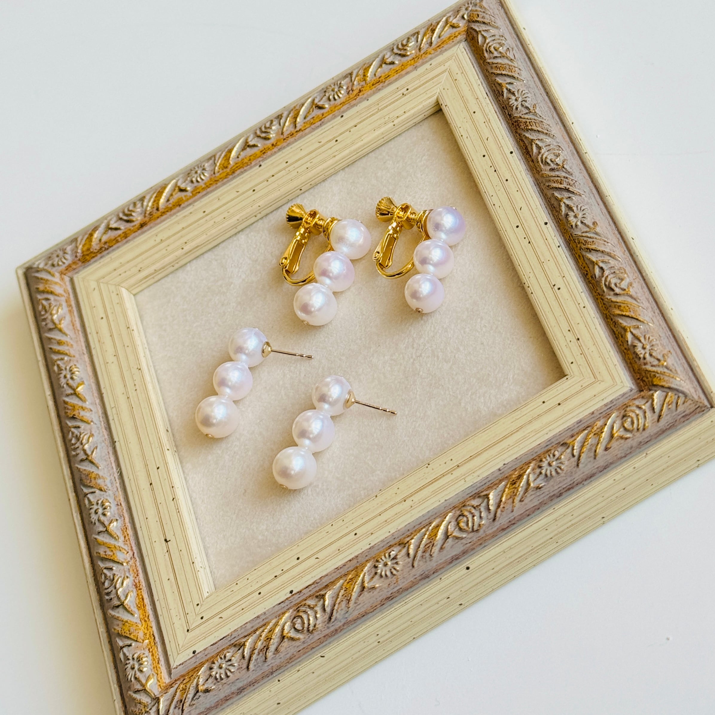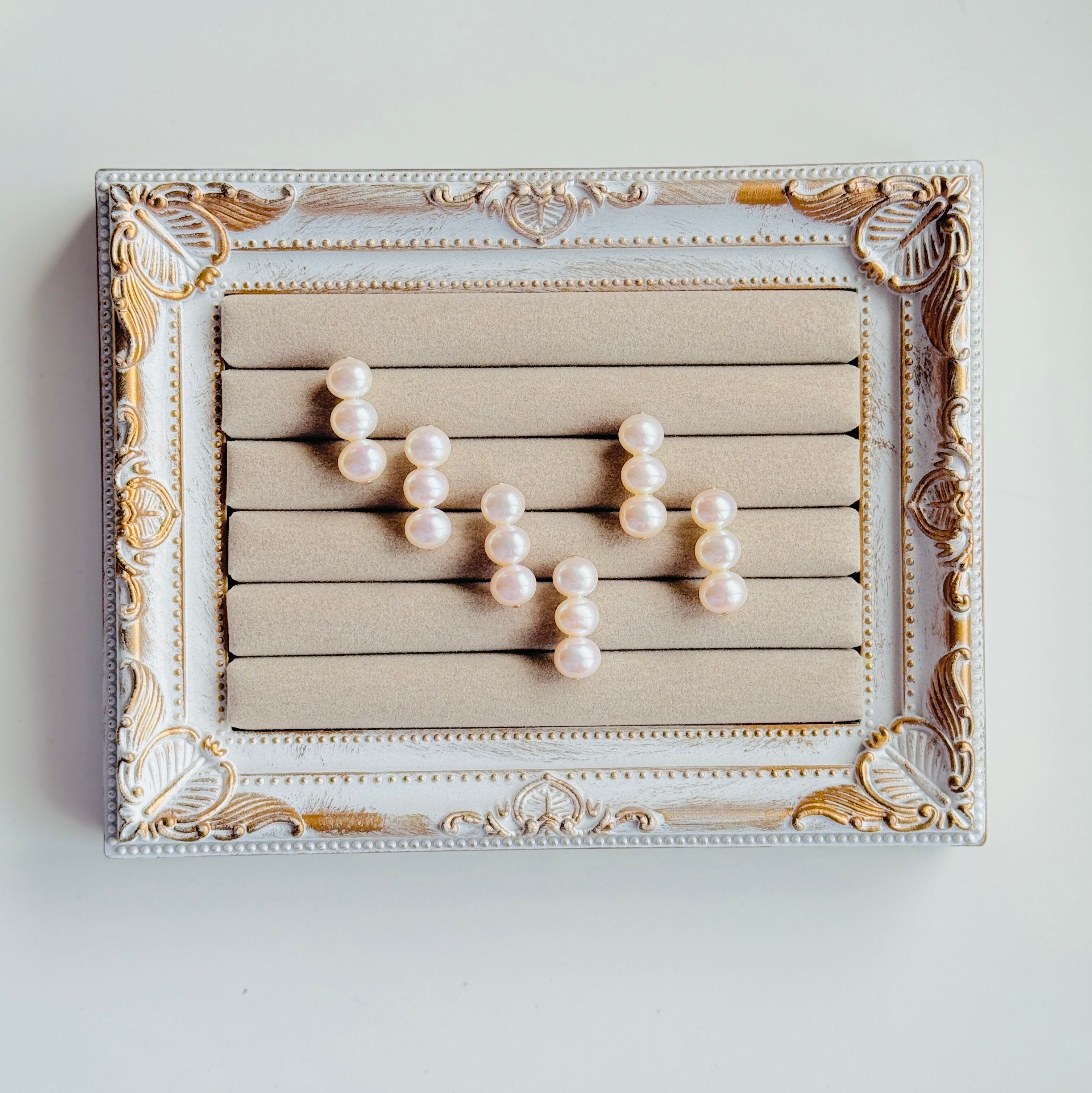 クォリティの良い淡水パールを使った、3連ピアス/イヤリングです♪
