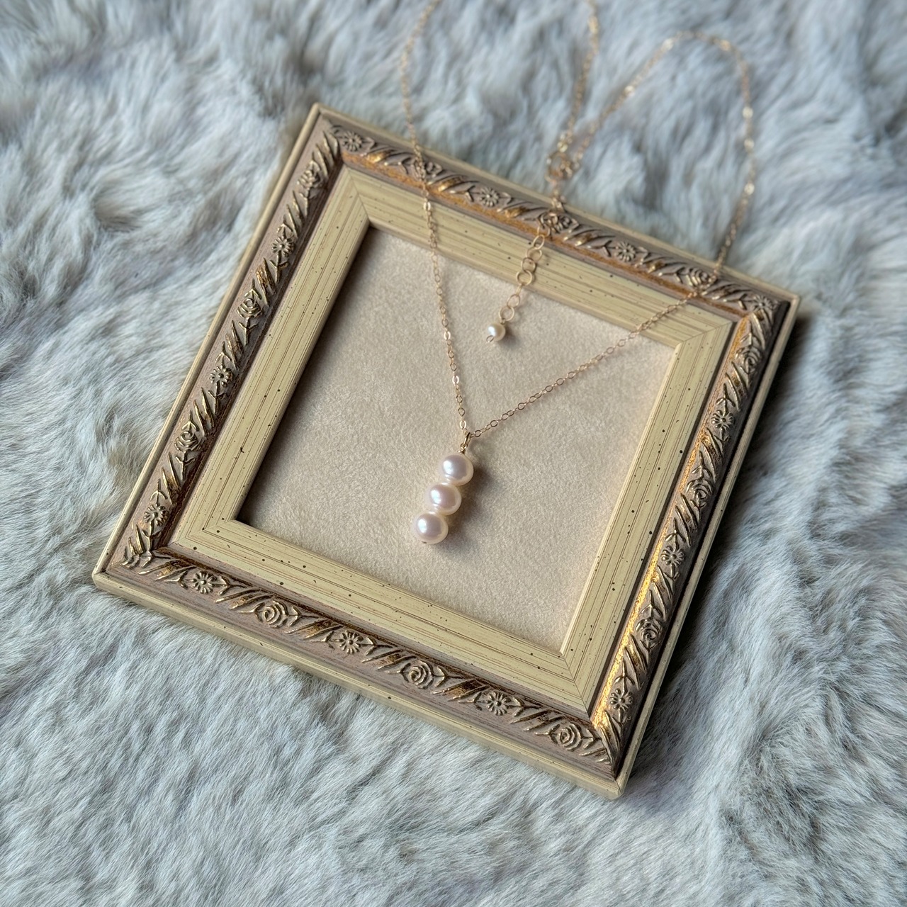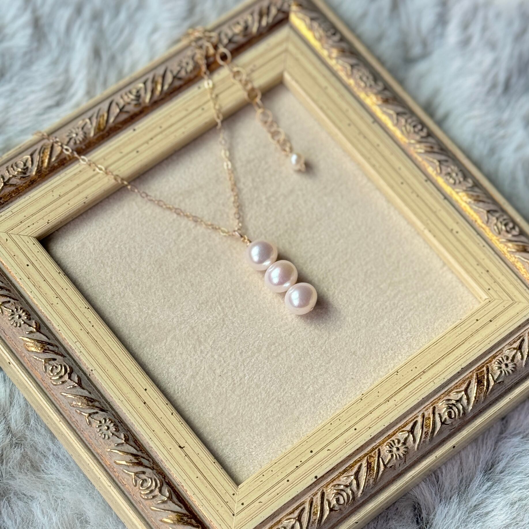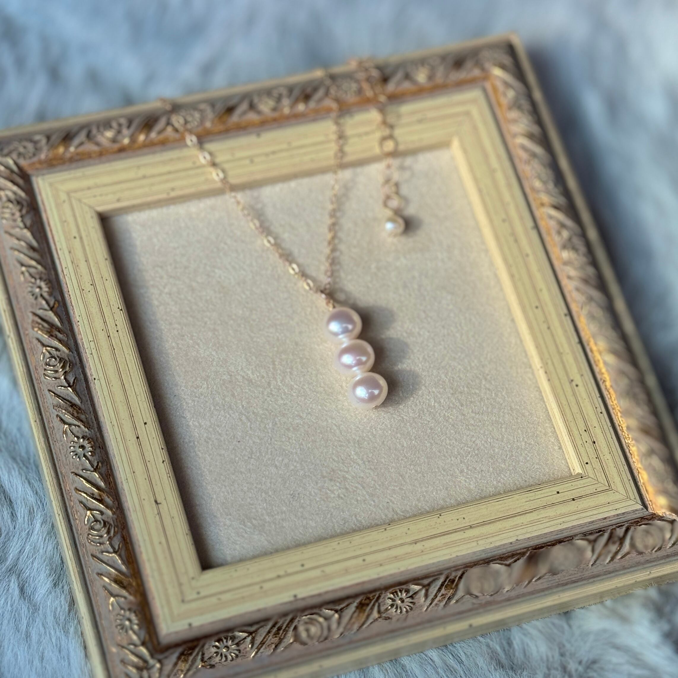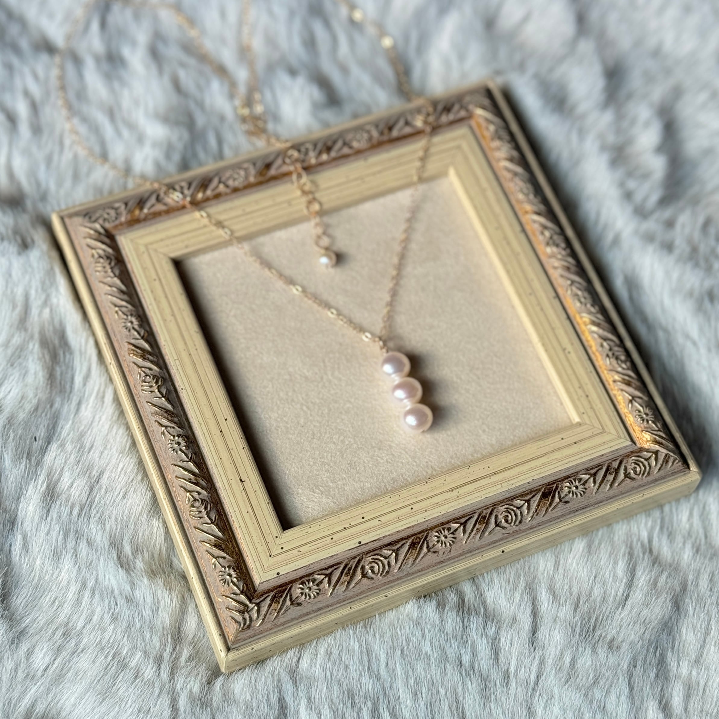 そんな3つの淡水パールが繊細に連なった上品なデザインが特徴です。