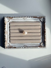 つややかな表面は光を受けて美しく輝き、装飾のないシンプルなデザインがパールの魅力を引き立てます。